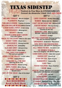 Du 01 au 03 Aout 2025, aura lieu le 26 ème Festival Pow Wow, avec Concerts , line Dance, Spectacles, Vendredi à 19h00, Samedi à 18h00, Dimanche à 11h00, à Steinb