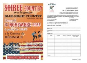 Le Samedi 15 Novembre 2025, Soirée Country avec Concert des *Blue Night Country* à 19h30, à La Comète de Hésingue (68220), Haut Rhin.