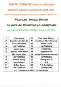 Le Mardi 22 Juillet 2025, Soirée Country avec *Nath’Country*, à 19h00, au Port de Belleville en Beaujolais (69), Rhone.