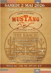 Le Samedi 02 Mai 2026, Journée Country de Partage avec *Mustang Country Club St Victoret*, à 14h30, Section Catalan, *The Ranch de Country Colombier Saugnieu*, La Mac 167 Route de Pont de Chéry, à Colombier Saugnieu (69124), Rhône.