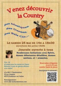 Le Samedi 25 Mai 2024, Après Midi Country Dance de 14h00 à 18h30, MLC Chardonnière, 22, rue Ampère, à Fontaines sur Saone (69270), Rhone.