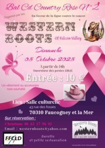 Le Dimanche 05 Octobre 2025, Après Midi Bal Country Rose cd à 14h00, chez *Western Boots Of Falcon Valley*, Salle Culturelle, 43 rue des Fossés, à Fauc