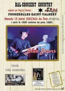 Le Dimanche 19 Janvier 2025, Après Midi Bal Country de *Foug’ art Country*, à partir de 13h30, avec Concert de *Blue Jeans*, Salle des Fetes de Fougerolles St Valbert (70), Haute S