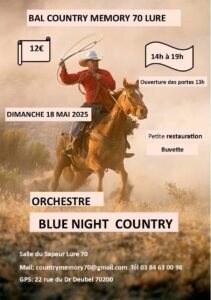 Le Dimanche 18 Mai 2025, Après Midi Bal Country avec Concert de *Blue Night Country*, de 14h00 à 19h00, Salle du Sapeur , 22 rue du Dr Deubel,