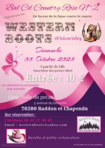 Le Dimanche 05 Octobre 2025, Après Midi Bal Country cd Rose, chez *Western Boots Of Falcon Valley*, à 14h00, Salle du Préau, 5 Avenue du Breuchin, à Raddon e