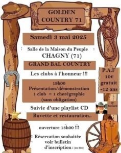 Le Samedi 03 Mai 2025, Grand Bal Country , Les Clubs à l’honneur, à partir de 19h00, Salle de la Maison du Peuple, à Chagny (71), Saone et Loire.