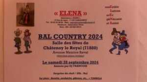 Le Samedi 28 Septembre 2024, Bal Country à 20h00, animé par *DJ Francois*, Salle des Fetes , Avenue Maurice Ravel, à Chatenoy le Royal (71880), Saone et Loire.