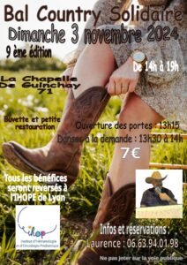 Le Dimanche 03 Novembre 2024, Après Midi Bal Country Solidaire , de 14h00 à 19h00, à La Chape
