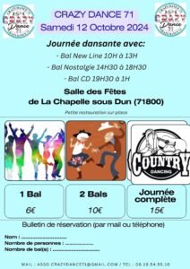 Accueil » Événements » (71) LA CHAPELLE SOUS DUN / JOURNEE COUNTRY ET NEW LINE LE 12.10.24.
