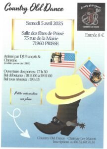 Accueil » Événements » (71) PRISSE / SOIREE COUNTRY OLD DANCE LE 05.04.25.