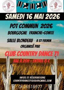 Le Samedi 16 Mai 2026, Bal Country des *Club Country Dance 71*, à 20h00, Salle Blondeau, à St Firmin (71), Saone et Loire.