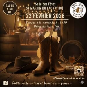 Le Dimanche 22 Février 2026? Après Midi Bal Country cd des *Country Spirit en Brionnais*,