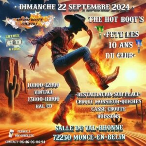 Le Dimanche 22 Septembre 2024, Journée Country des *The Hot Boots Country*, qui Feteront leurs 10 ans, à partir de 10h00, Salle du Val Rhonne, à Moncé en Belin (72230), S