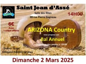 Le Dimanche 02 Mars 2025, Après Midi Bal Country annuel des *Arizona Country*, à 14h00, Salle des Fetes , 28 rue Pierre Gagneau, à St Jean D’Assé (72380), Sa