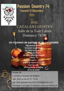 Le Samedi Journée Catalan Country chez *Passion Country 74*, à partir de 16h00 et jusqu’à 01h00, Salle de la Tour Carrée, à Domancy (747