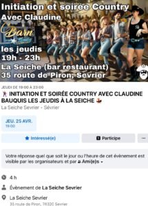Accueil » Événements » (74) SEVRIER / INITIATION ET SOIREE COUNTRY LE 25.04.24.