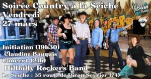 Le Vendredi 27 Mars 2026, Soirée Country avec Initiation de *Claudine Bauquis* , et Concert des *Hillbilly Rockers Band* à 21h00, à la Seiche, 35 Route de Piron, à Sévrier (74), Haute Savoie.