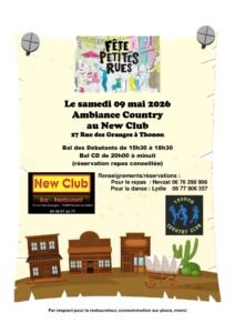 Le Samedi 09 Mai 2026, Journée Country à partir de 15h30 et jusqu’à 00h00,au *New Club*, 27 rue des Granges, à Thonon les Bains (74200), Haute Savoie.