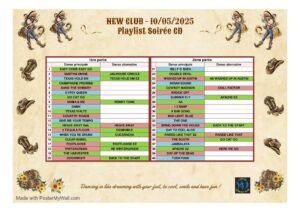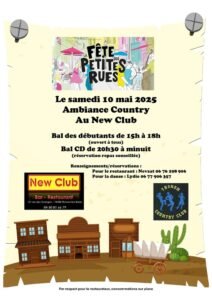 Le Samedi 10 Mai 2025, Journée Ambiance Country au *Bar Restaurant New Club*, avec Bal Débutants de 15h00 à 18h00 et Bal cd de 20h30 à 00h00, 27 rue des Granges, à Thonon les Bains (74200), Haute Savoie.