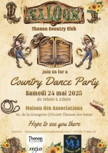 Le Samedi 24 Mai 2025, Soirée Country Dance Party chez *Thonon Country Club*, de 19h00 à 23h00, Maison des Associations, Avenue de la Grangette, à Thon les Bains (74200), H