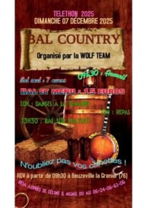 Le Dimanche 07 Décembre 2025, Journée Country organisée par *La Wolf Team*, pour le Téléthon, à partir de 09h30, à Beuzeville le Grenier (76) S