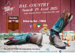 Le Samedi 19 Avril 2025, Bal Country à 19h30, chez *Forever Country *, Salle Daniel Pierre, à Cany Barville (76), Seine Maritime.