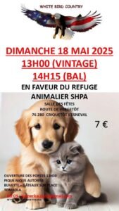 Le Dimanche 18 Mai 2025, Après Midi Bal Country chez *White Bird Country*, en Faveur du Refuge SHPA, à 14h15, Salle des Fetes, Route de Vergetot, à