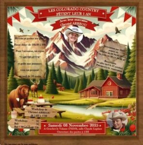 Le Samedi 08 Novembre 2025, Journée Country chez *Les Colorado Country* qui Feteront leur 1an , avec un Workshop de *Chrystel Arreou* à partir de 14h00, Salle Claude Laplace, à Gruchet le Valasse (76210), Seine Maritime.