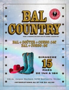 Le Dimanche 15 Mars 2026, Après Midi Bal Country des *White Bird Country*, de 14h00 à 18h00, 24 B Avenue Jacques Eberhard, à Gonfreville L’Or