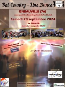 Accueil » Événements » (76) ISNEAUVILLE / BAL COUNTRY LINE DANCE LE 28.09.24.