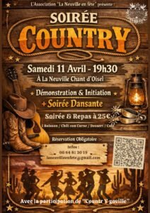 Le Samedi 11 Avril 2026, Soirée Country avec Démonstration et Initiation, Soirée Dansante, chez *La Neuville en Fête*, à 19h30,