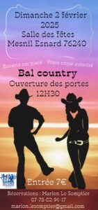 Le Dimanche 02 Février 2025, Après Midi Country Dance à 12h30, Salle des Fetes de Mesnil Esnard (76240), Seine Maritime.
