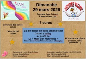 Le Dimanche 29 Mars 2026, Après Midi Bal Country à 14h00, Gymnase du Lycée Jean Prévost, Avenue Jean Prévost, à Montivilliers (76290), Seine Maritime.