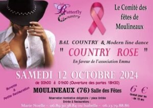 Le Samedi 12 Octobre 2024, Bal Country & Modern Line Dance Rose, de 20h00 à 01h00, Salle des Fetes de Moulineaux (76), Seine Maritime.