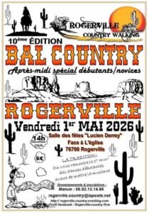 Le Vendredi 1er Mai 2026, Après Midi Bal Country des *Rogerville Country Walking*, à 14h00, Salle des Fetes Lucien Derrey, Face à L’église, à Rogerville (76700), Seine Maritime .