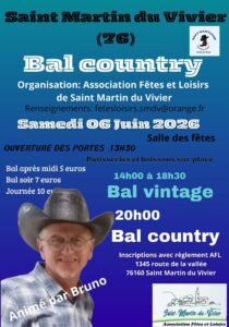 Le Samedi 06 Juin 2026, Journée Country animée par *Bruno* , à partir de 14h00, à St Martin du Vivier (76), Seine Maritime.