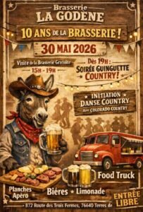 2026 Soirée Country Guinguette avec Initiation Danse Country avec *Colorado Country*, dès 19h00, Brasserie La Godène, qui Fetera ses 10 ans, 872, Routre des Trois Fermes , à Terres de Caux (76640), Seine Maritime.