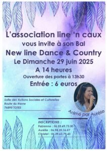 Le Dimanche 29 Juin 2025, Après Midi Bal New Line Dance et Country chez *Line ‘N Caux*, à 14h00, Salle des Actions Sociales et Culturelles, Route du Havre, à Totes (7