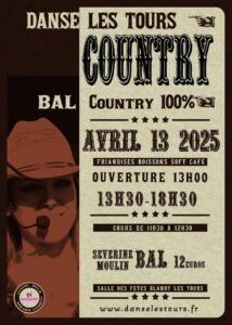 Le Dimanche 13 Avril 2025, Après Midi Bal Country de 13h30 à 18h30, chez *Danse les Tours*, avec Séverine Moulin, Salle des Fetes de Blandy les Tour