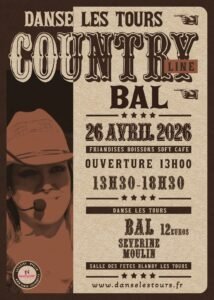 Le Dimanche 26 Avril 2026, Après Midi Bal Country de 13h30 à 18h30, avec *Sèverine Moulin*, Salle des Fêtes de Blandy les Tours (77), Seine et Marne.