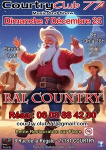 Le Dimanche 07 Décembre 2025, Après Midi Bal Country de 13h00 à 18h00, chez *Courtry Club 77*, 08 rue de la Régale, à Courtry (77181), Seine et Marne.
