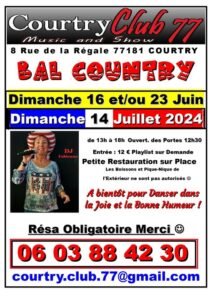 Le Dimanche 16 Juin 2024, Après Midi Country Dance , de 13h00 à 18h00, 08 rue de la Régale, à Courtry (77181), Seine et Marne.
