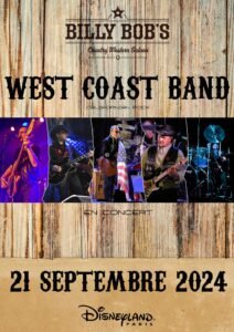Le Samedi 21 septembre 2024, Soirée Concert Country animée par *West Coast Band California Rock*,au Billy Bob’s , Country Western Saloon, à Disney Village , 02, Avenue Paul Seramy à Chessy (77), à Disney Village Paris.