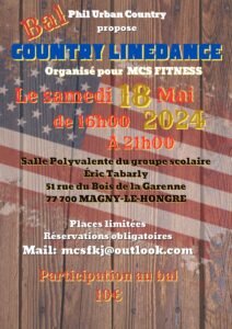 Accueil » Événements » (77) MAGNY LE HONGRE / APRES MIDI COUNTRY LINE DANCE LE 18.05.24.