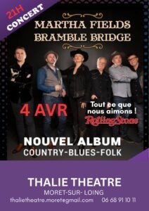 Le Vendredi 04 Avril 2025, Soirée Country Blues Folk, avec Concert de *Martha Fields Bramble Bridge*, à 21h00, au *Thalie Theatre*, à Moret sur Loing (77