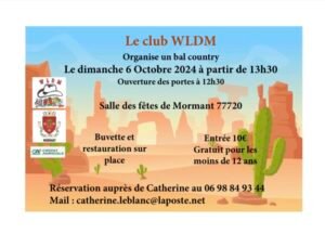 Le Dimanche 06 Octobre 2024, Après Midi Bal Country du Club *WLDM*, à partir de 13h30, Salle des Fetes de Mormant (77720), en Seine et Marne.