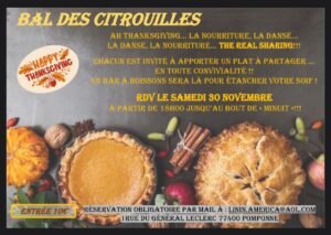 Le Samedi 30 Novembre 2024, Bal des Citrouilles des *Happy Thanksgiving*, de 18h00 à Minuit, 01, rue du Général Leclerc , à Pomponne (77400), Seine et Marne.