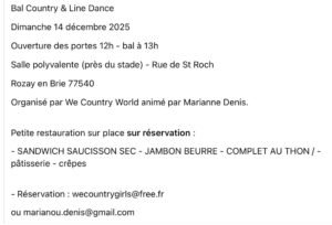 Accueil » Événements » (77) ROZAY EN BRIE / AM BAL COUNTRY ET LINE DANCE LE 14.12.25.