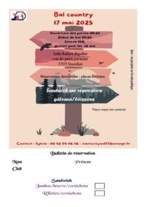Le Samedi 17 Mai 2025, Bal Country à 19h30, chez *Kentucky Western Dancers*, Salle Robert Rigollet, rue du Petit Paraclet, à Sourdun (77171), Seine et Marne.