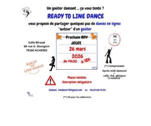 Le Jeudi 26 Mars 2026, Après Midi Country Dance des *Ready To Line Dance*, de 14h30 à 18h00, Salle Biraud, 68 rue G.Bourgoin, à Acheres (78260), Yvelines.